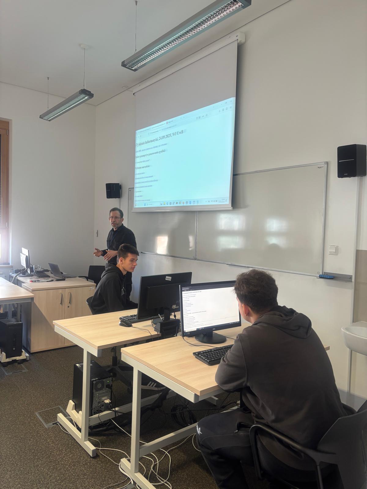 24 września 2025 roku uczniowie klas 3 i 4 mieli wyjątkową okazję uczestniczyć w wydarzeniu (TY)dzień informatyki na Wydziale Informatyki Uniwersytetu w Białymstoku. Wydarzenie to zostało zorganizowane dla klas o profilach ścisłych, których uczniowie interesują się informatyką i rozważają przyszłość związaną ze studiami informatycznymi.